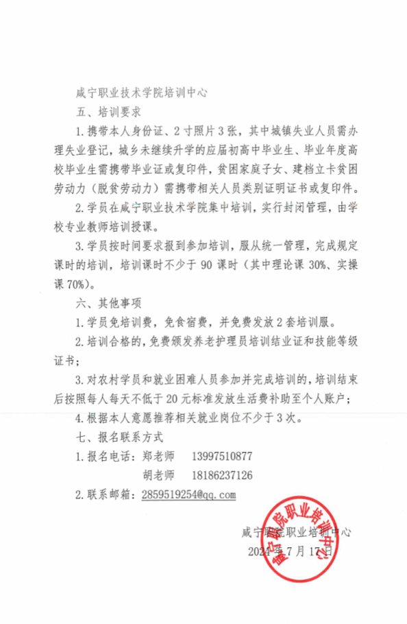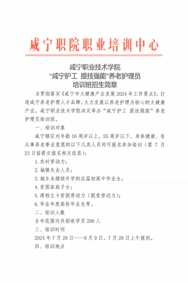 咸宁职业技术学院“咸宁护工 提技强能”养老护理员培训班通知