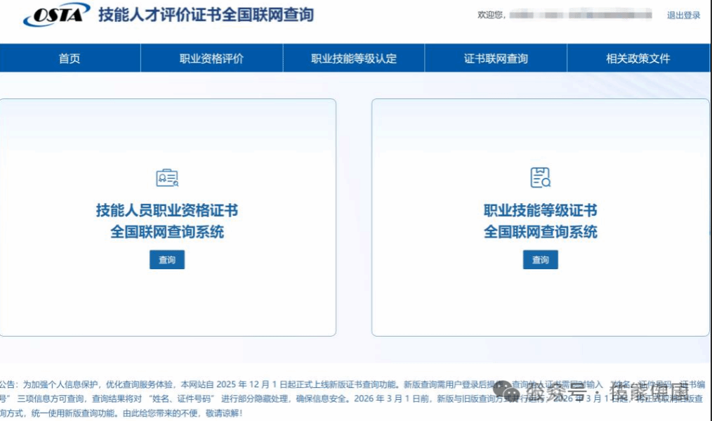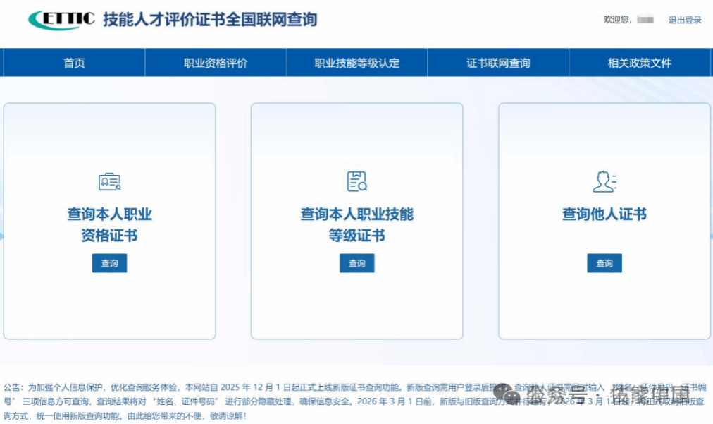 为保障个人信息安全,2025年12月1日本网站新版证书查询功能上线。新版证书查询方式说明如下: